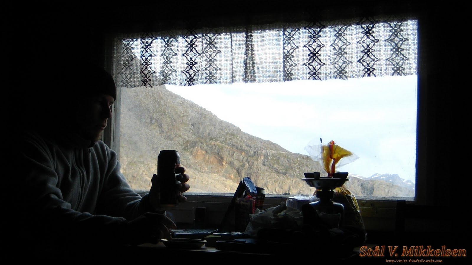 Jeg tente ett bål til kaffen og sko tørk. Samtidig åpnet skylaget litt på seg, så solen fikk skinne litt !